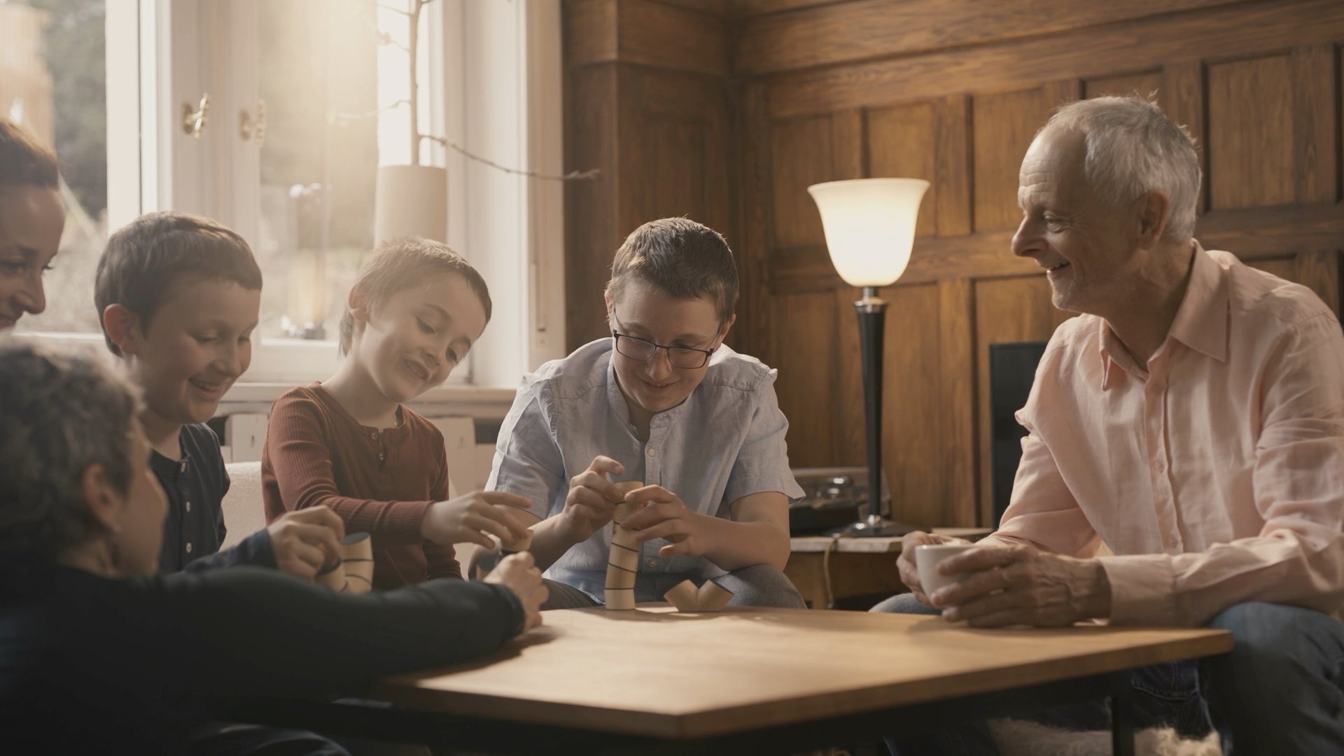 Wie treffen uns als Familie, spielen/stapeln und haben Freude dabei.