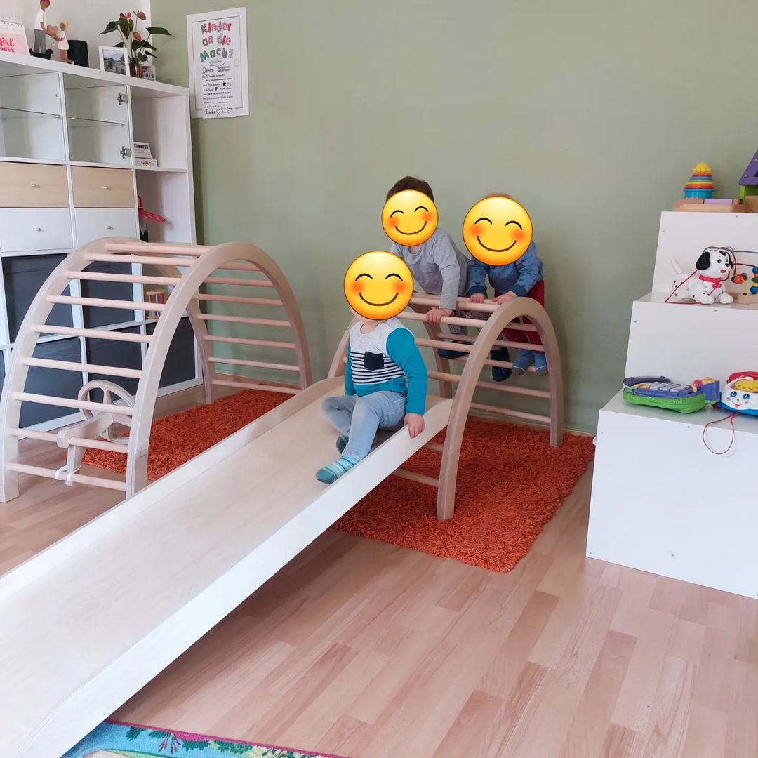 Fix & fertig montiert, schraubenloser Kletterbogen – fördert Motorik, Kreativität und Geschicklichkeit, nachhaltig in Deutschland gefertigt.