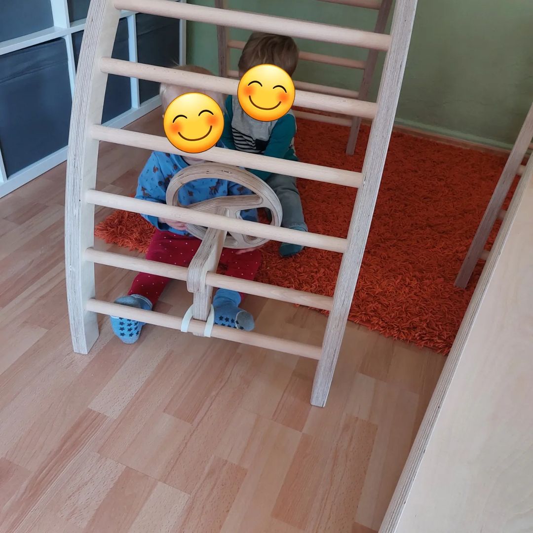 Die Holzmöbel lassen sich auch von Erwachsenen nutzen (seitlich gestellt), die Loggos sind sowohl für Erwachsene als auch Kinder ein Highlight und für wen der Kletterbogen nicht mehr zum Klettern reicht, der macht ihn zum Sportgerät: Für Liegestützen oder Dehnübungen - bis die nächste Generation wieder mit Krabbeln und Klettern beginnt.