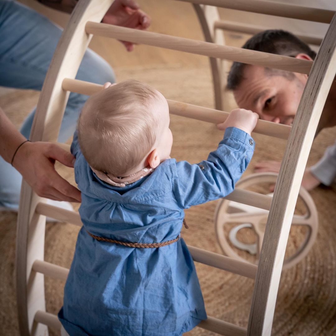 Die Holzmöbel lassen sich auch von Erwachsenen nutzen (seitlich gestellt), die Loggos sind sowohl für Erwachsene als auch Kinder ein Highlight und für wen der Kletterbogen nicht mehr zum Klettern reicht, der macht ihn zum Sportgerät: Für Liegestützen oder Dehnübungen - bis die nächste Generation wieder mit Krabbeln und Klettern beginnt.